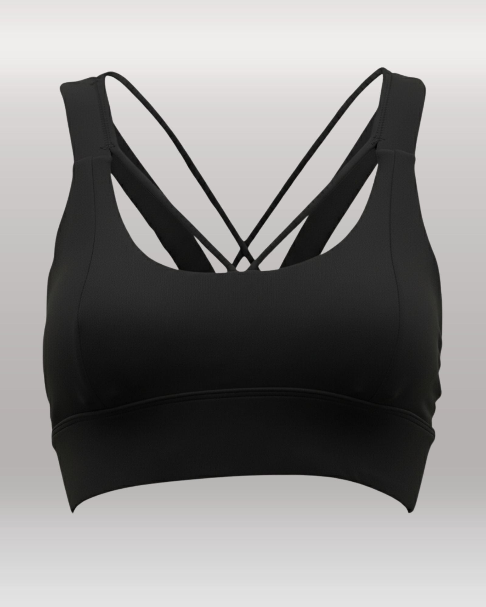 - PTS sports bra is a medium impact training bra, scoop neck style with front straps and a double Criss cross back straps to highlight your assets. Our wide under band to offer extra support through your workout