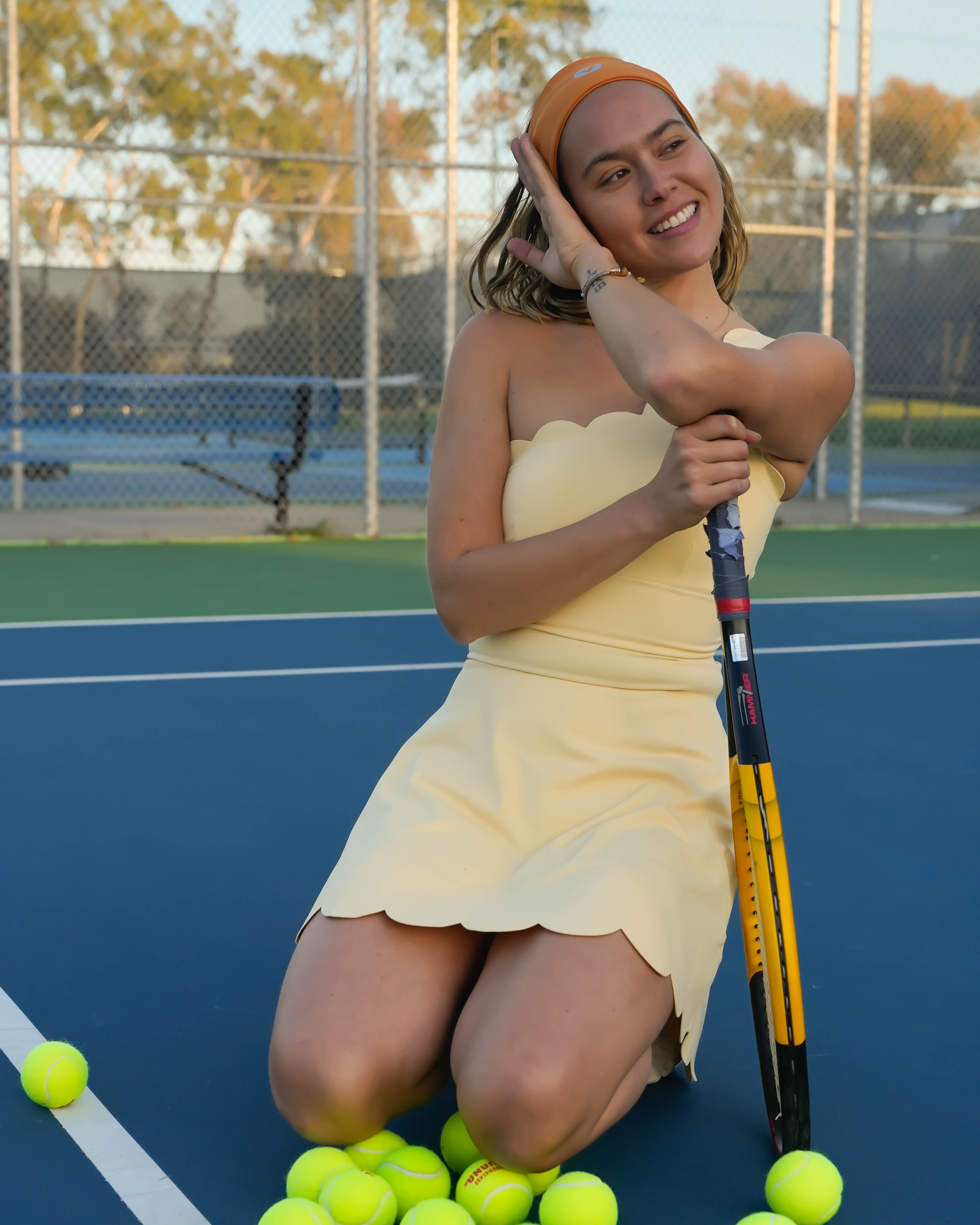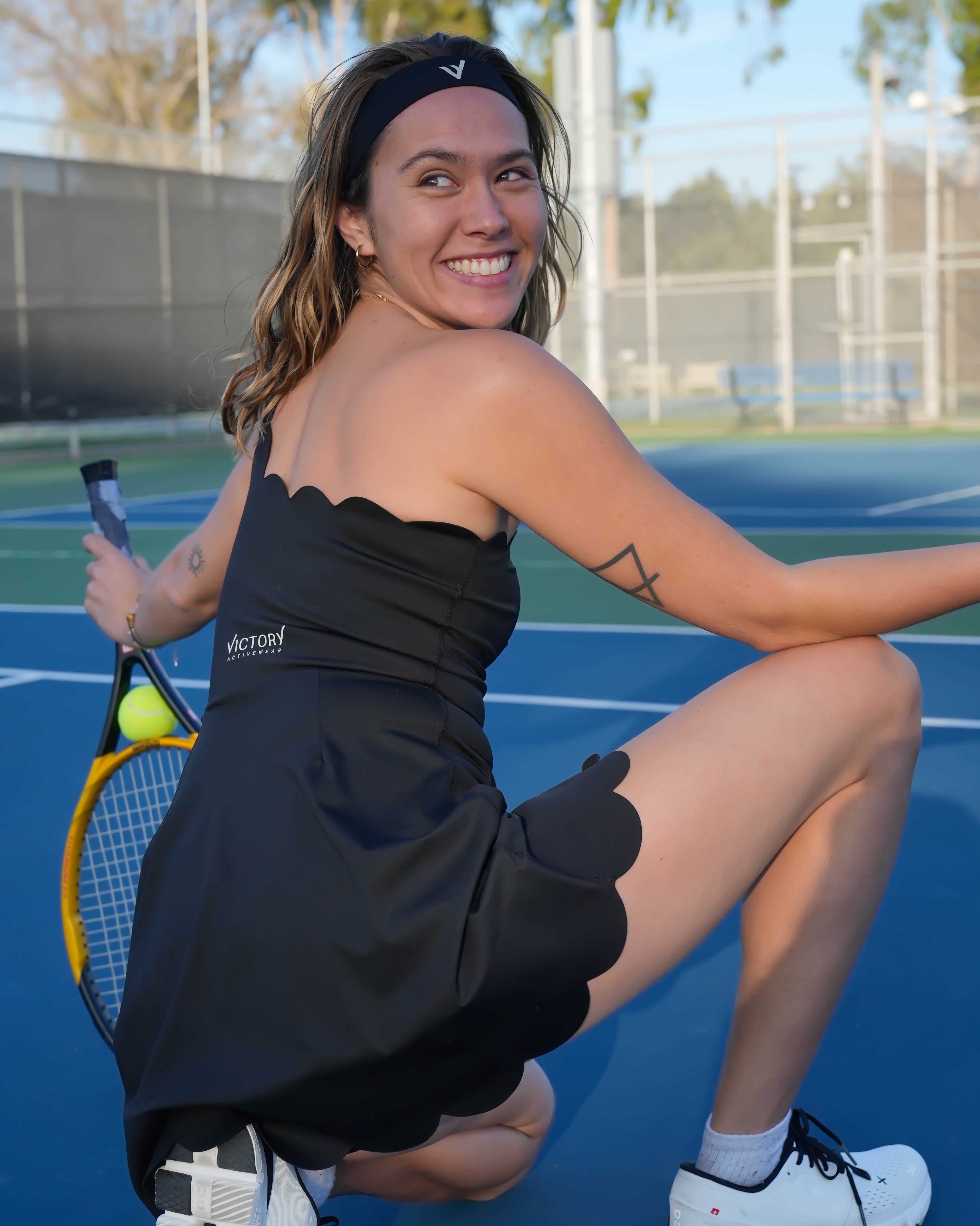 - Inspired of seashells A line silhouette, Oyster minidress included a short features scallop one shoulder collar neckline and hem perfectly to your tennis day or fun pickle ball game with ease.