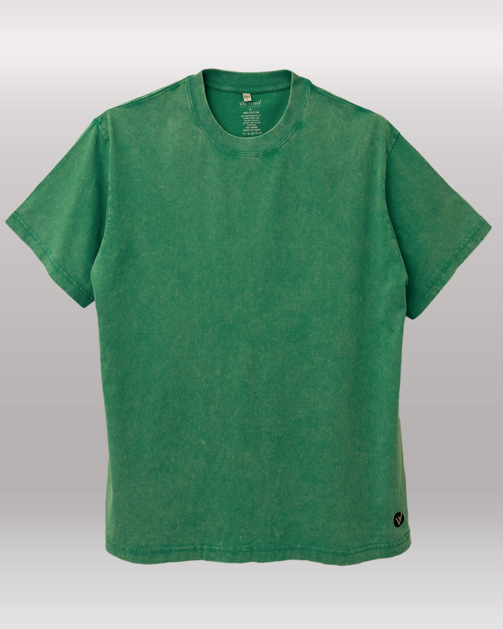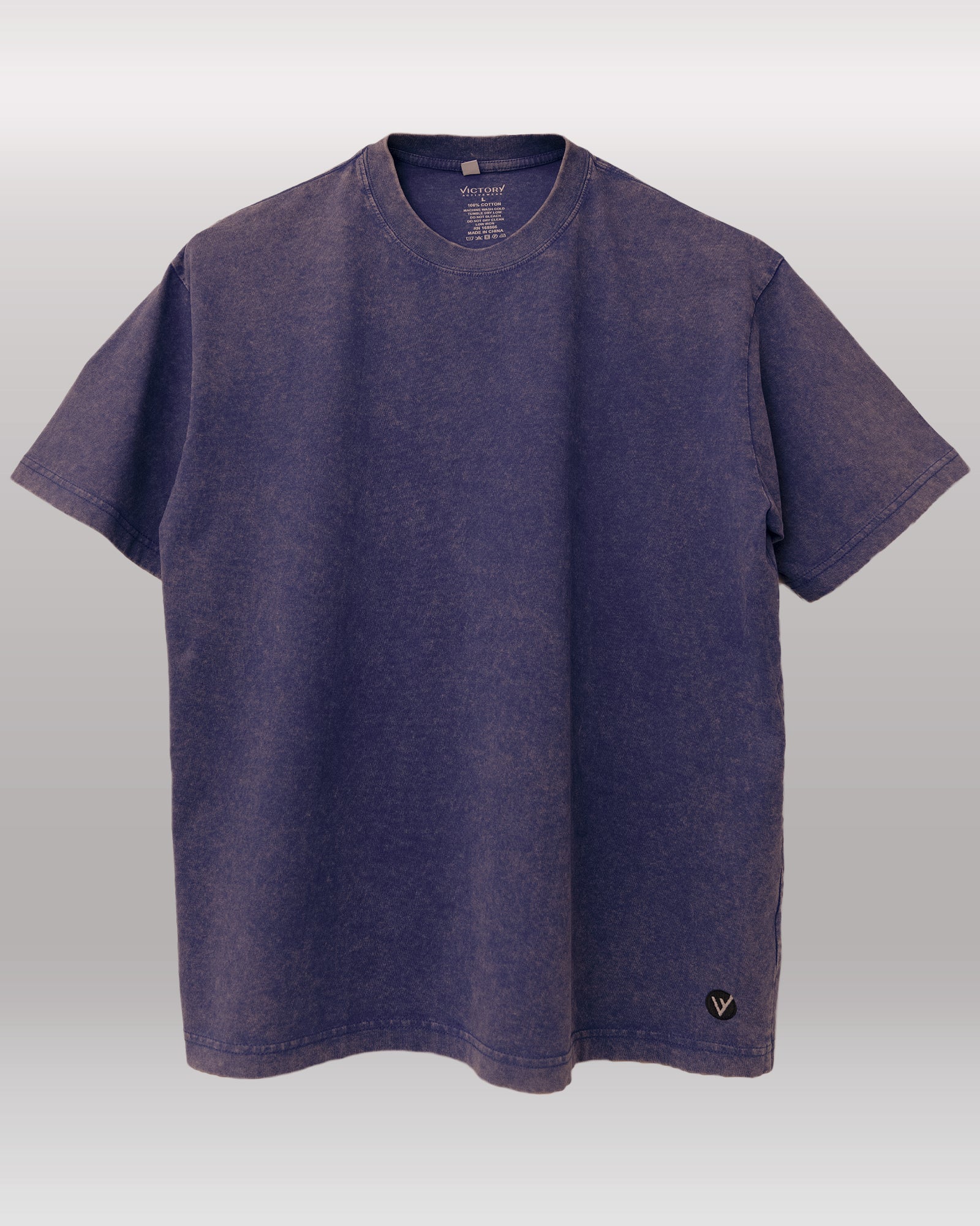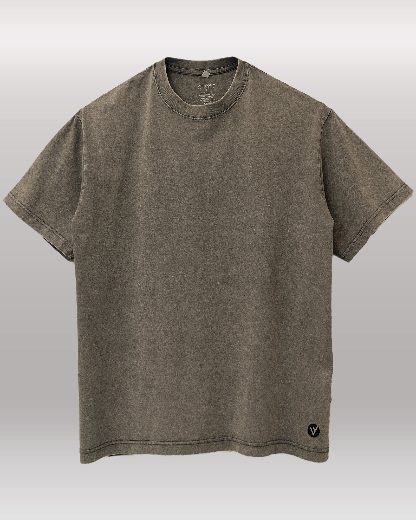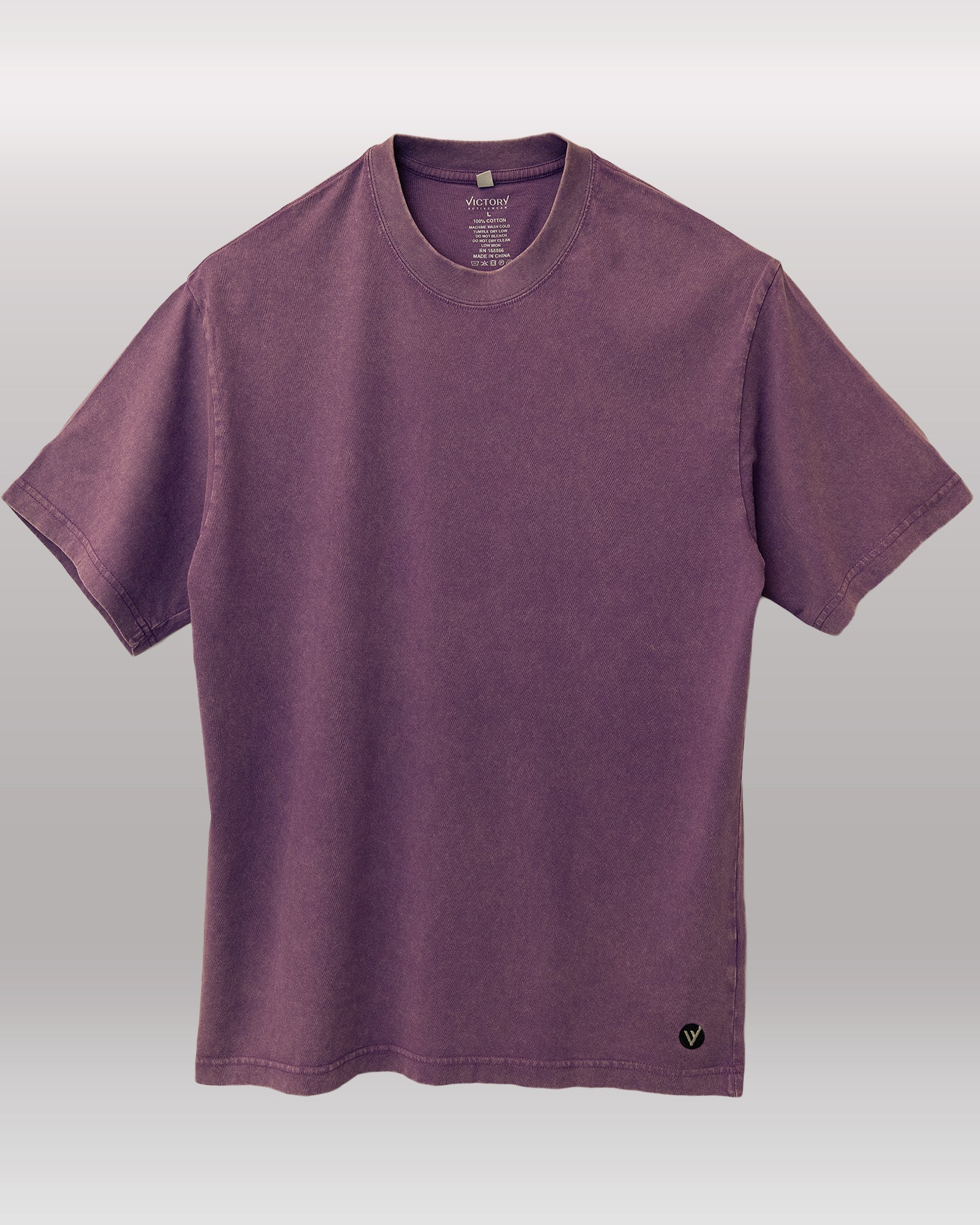 Oversized vintage inspired cotton short-sleeve T has distressed details on the collar rib and hem with embroidery logo.