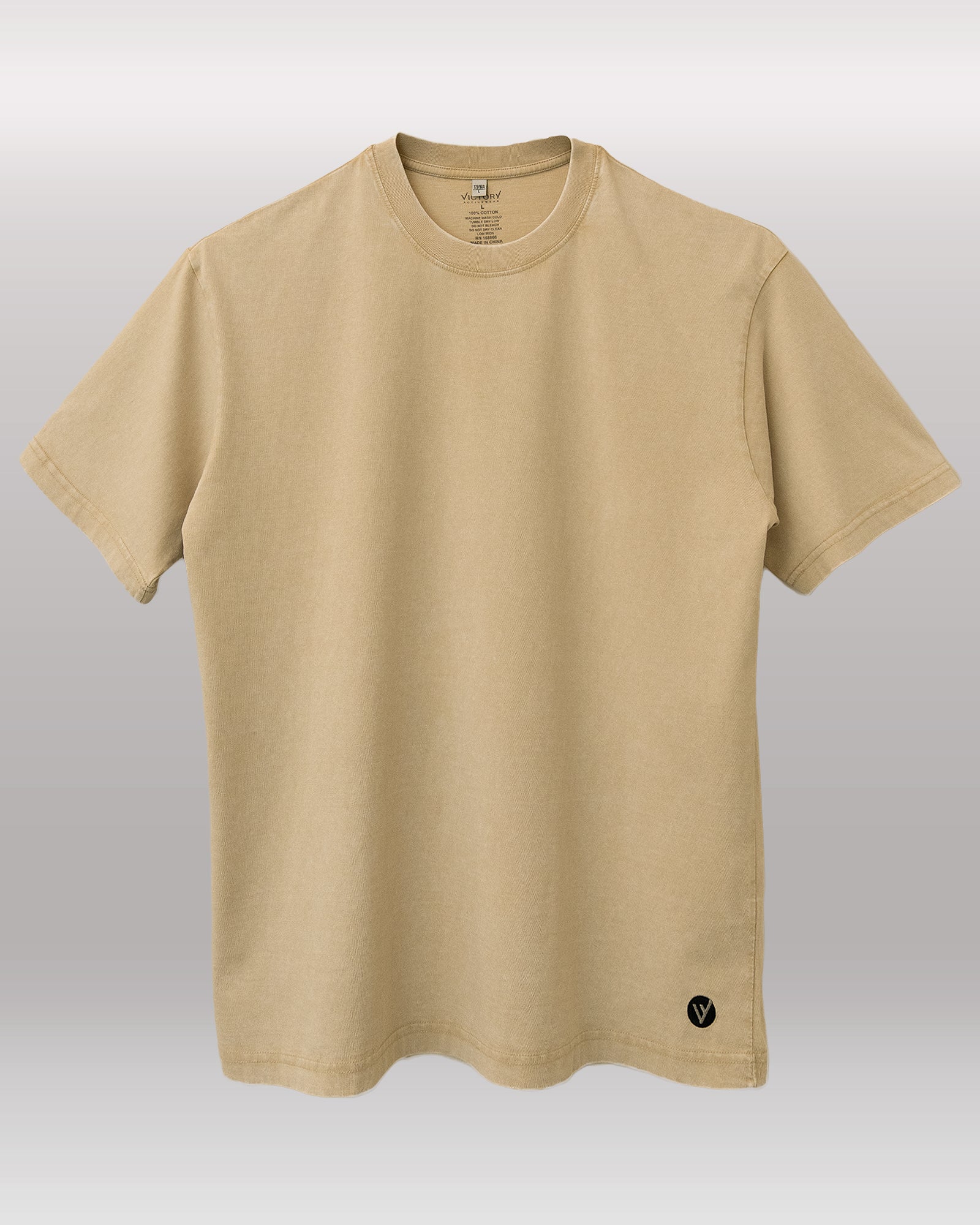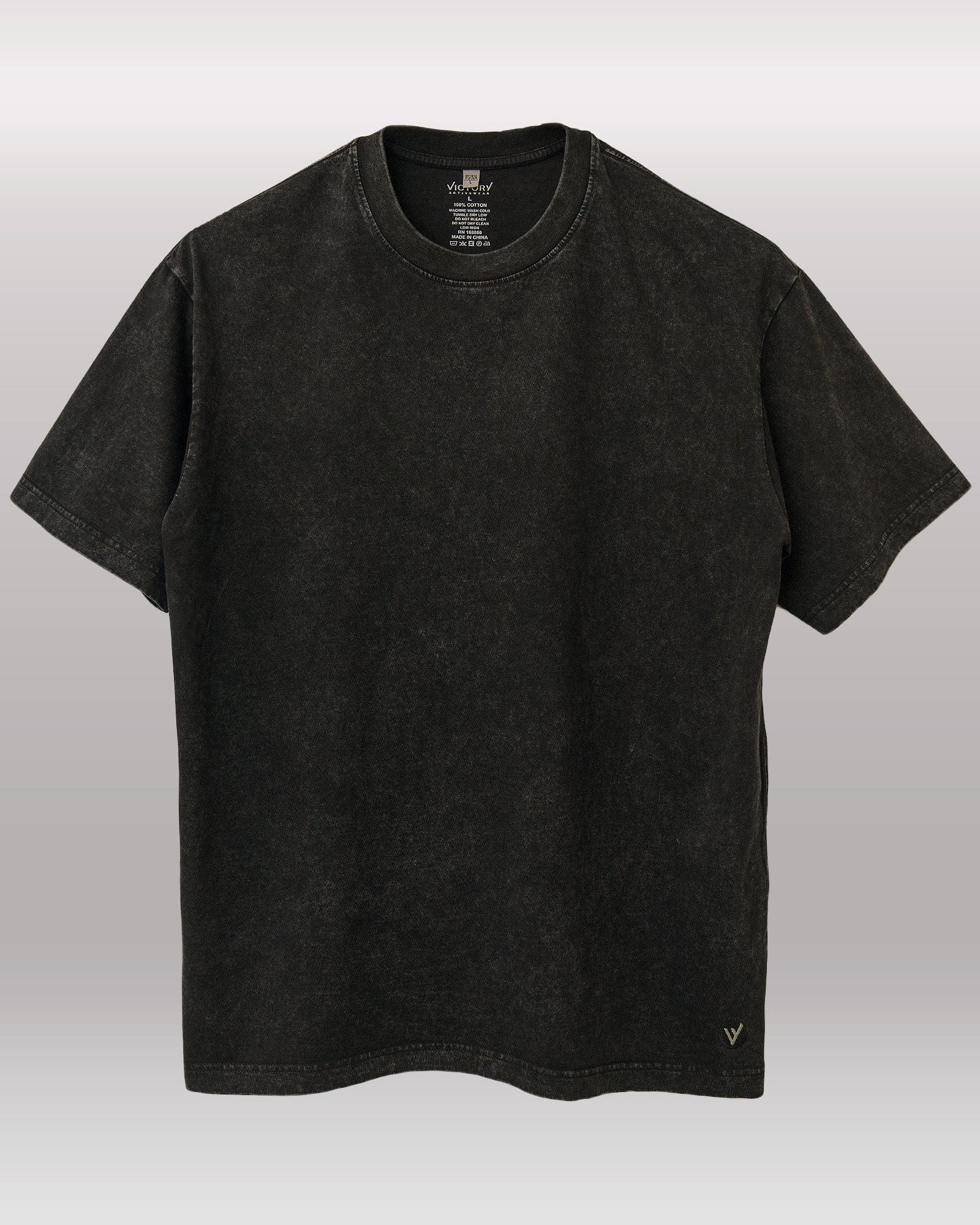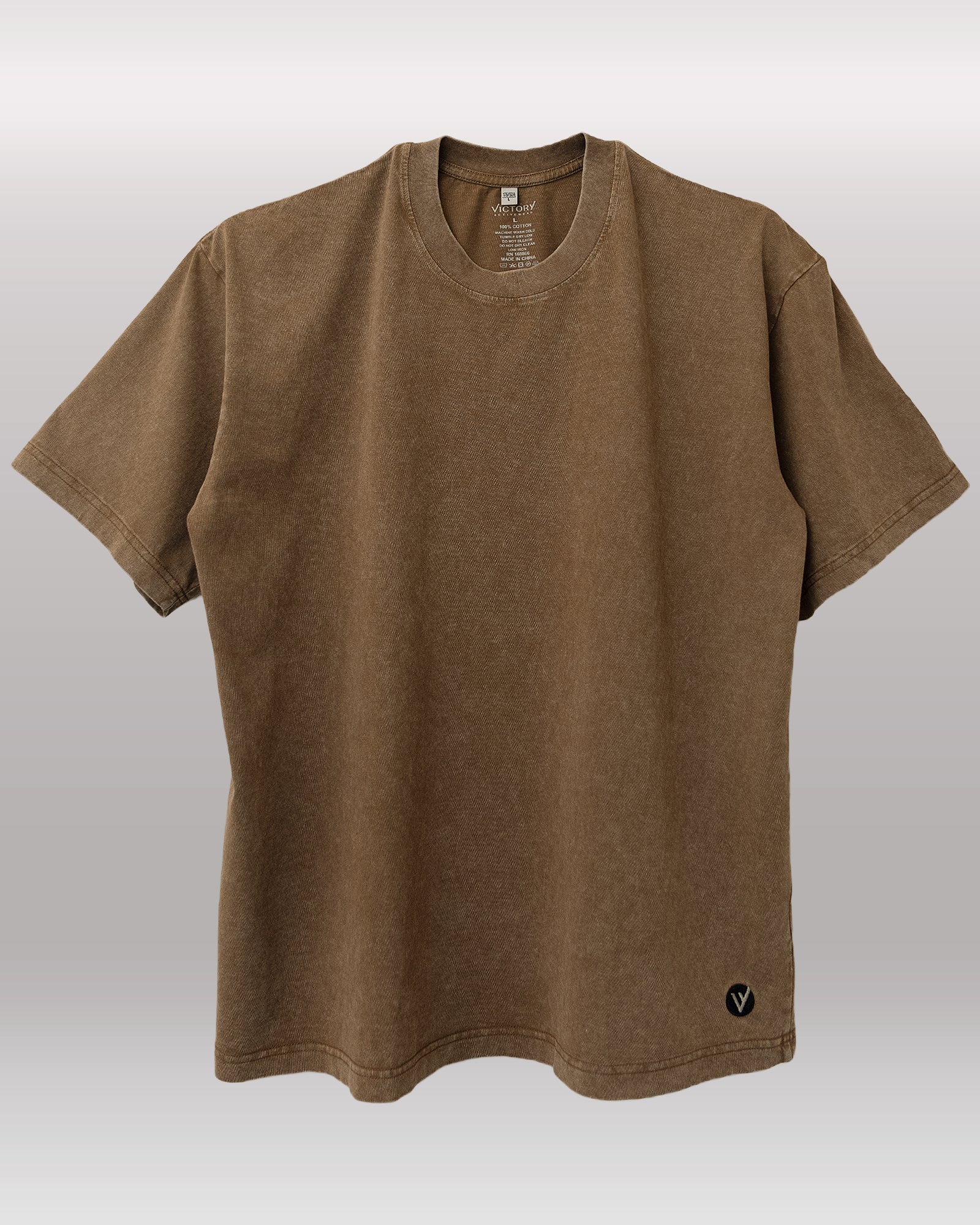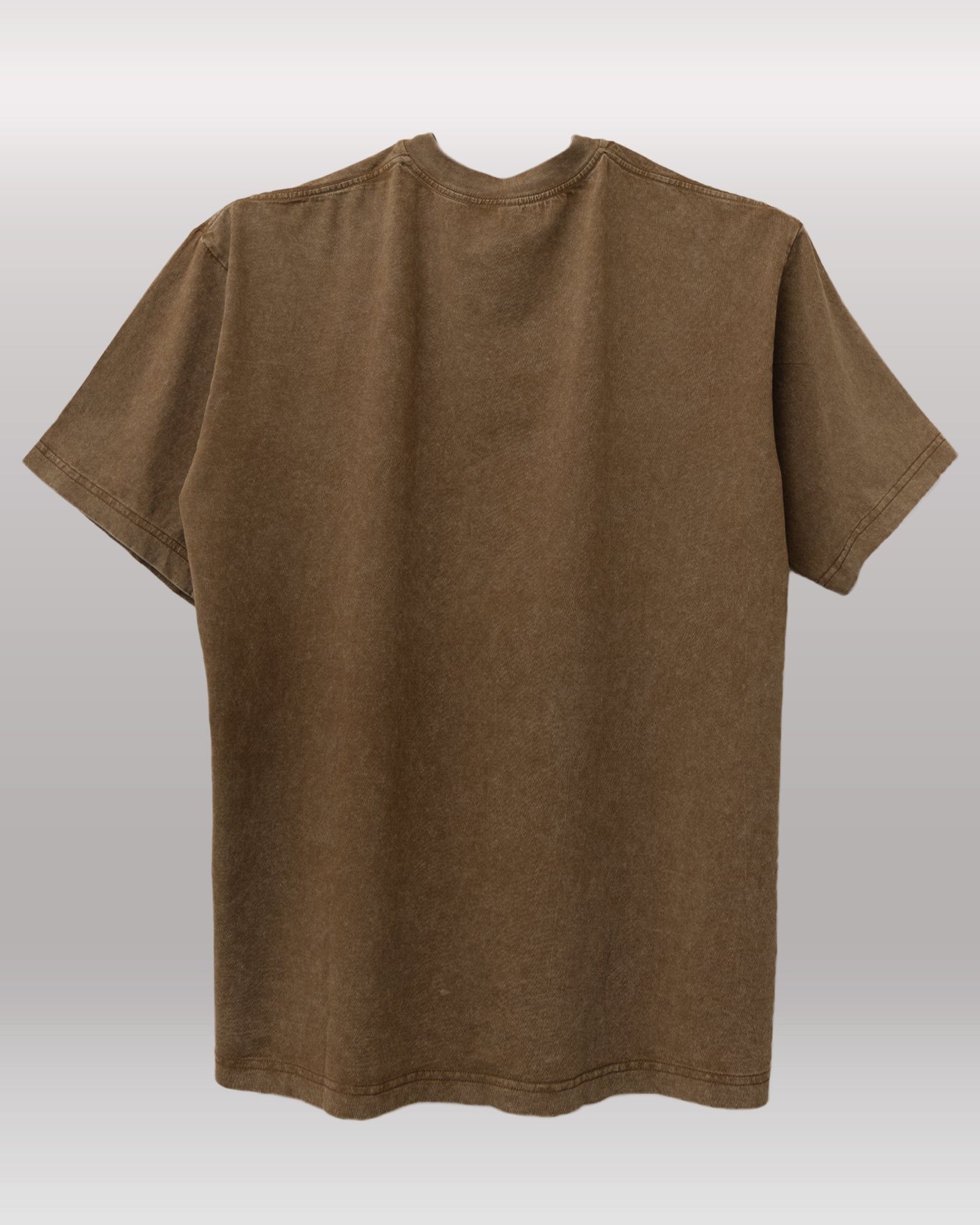 Oversized vintage inspired cotton short-sleeve T has distressed details on the collar rib and hem with embroidery logo.