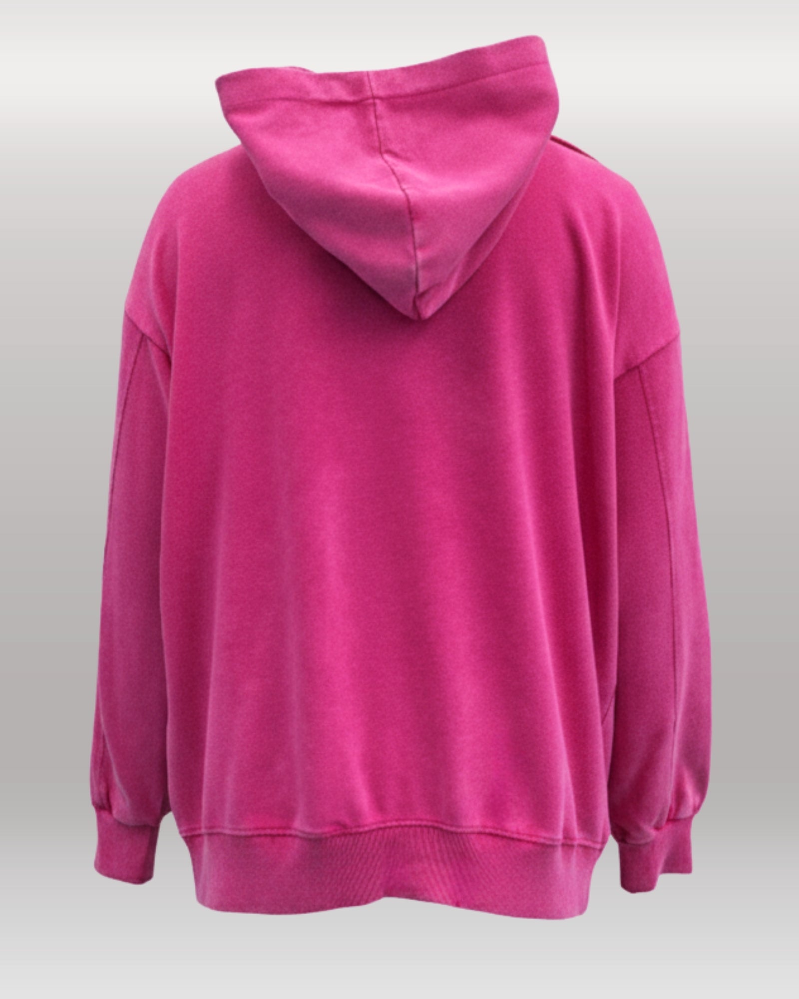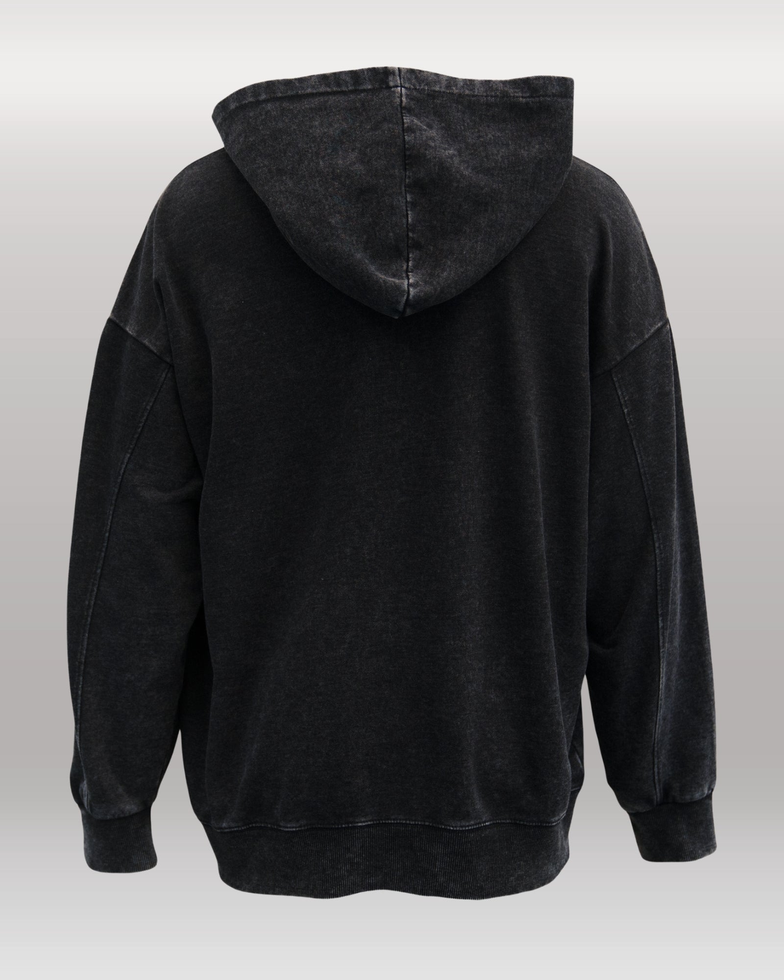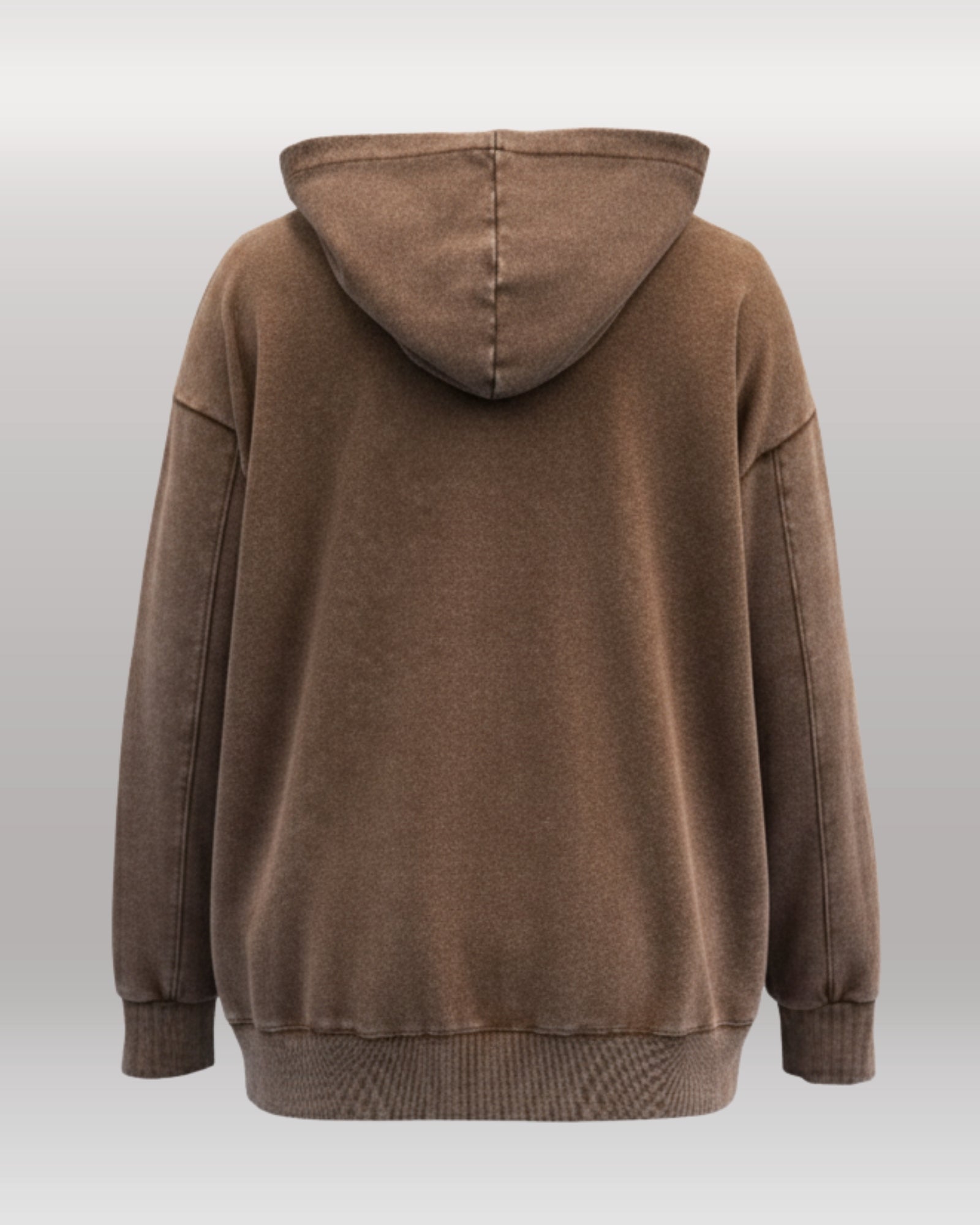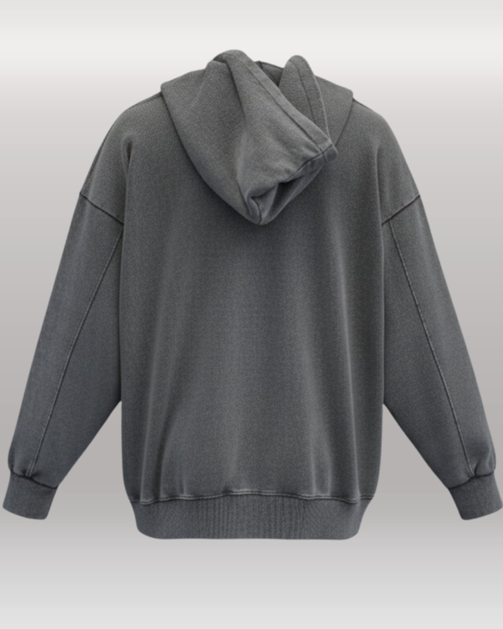 - Oversized fit, drop shoulders, and a roomy hood for laid-back vibe.