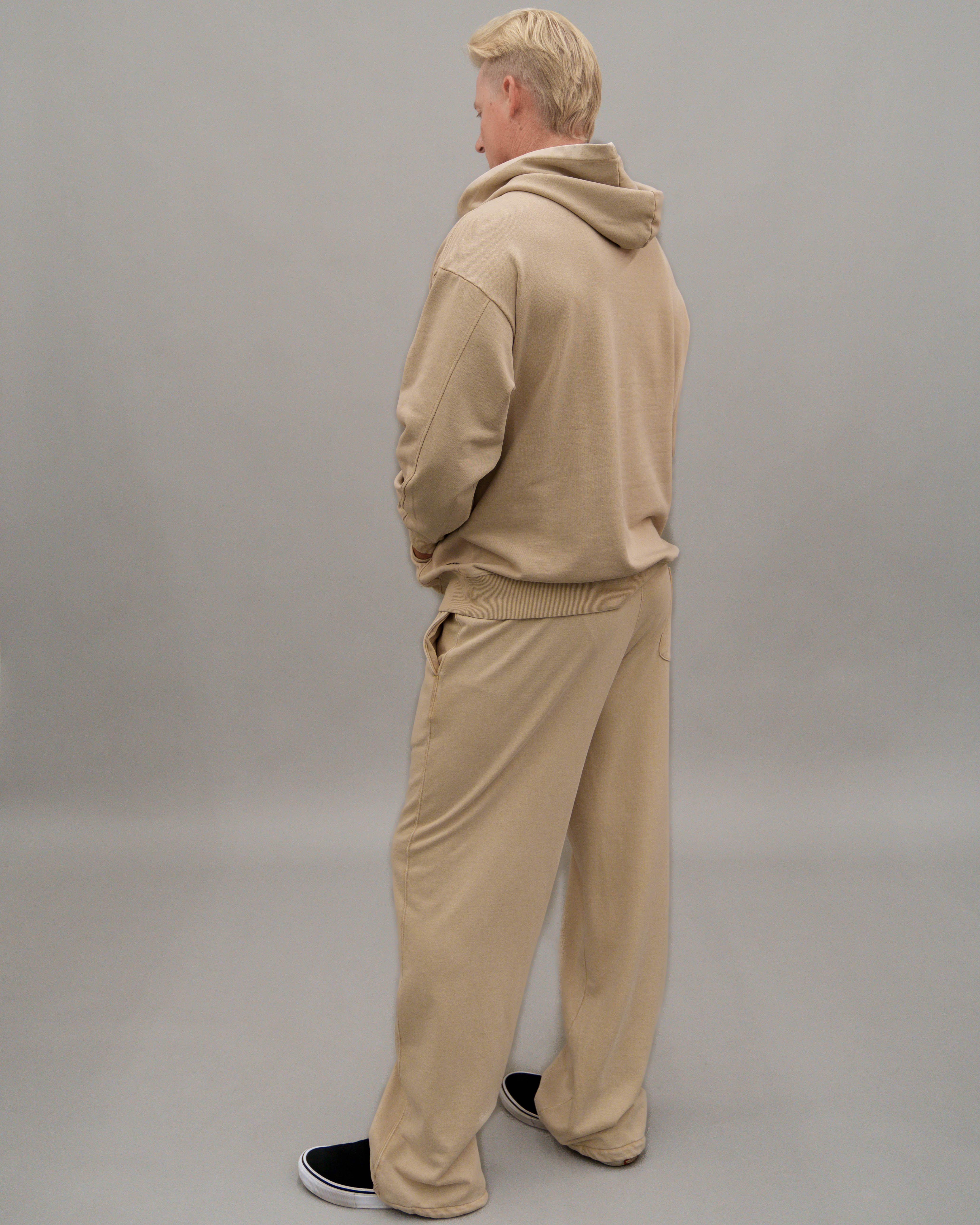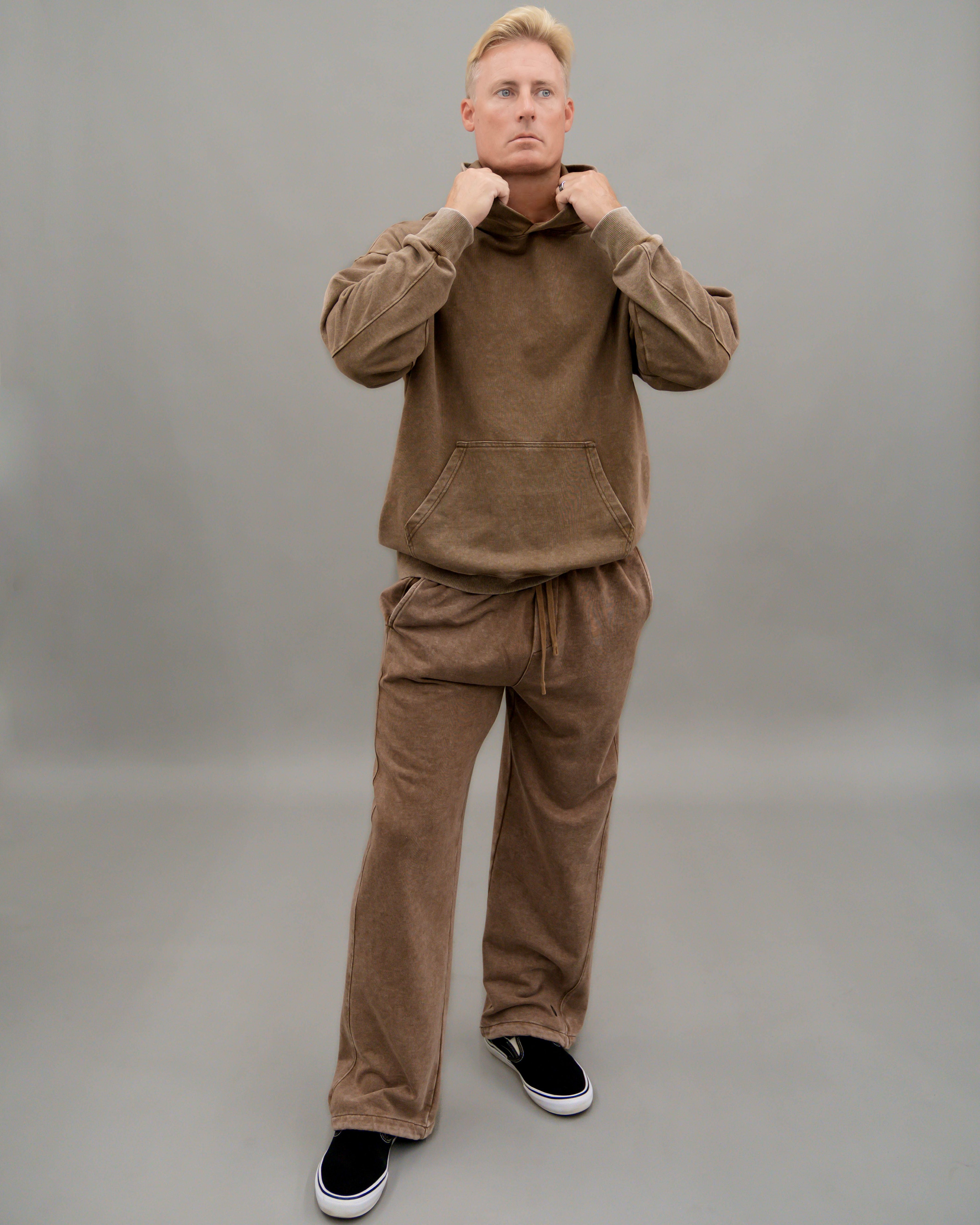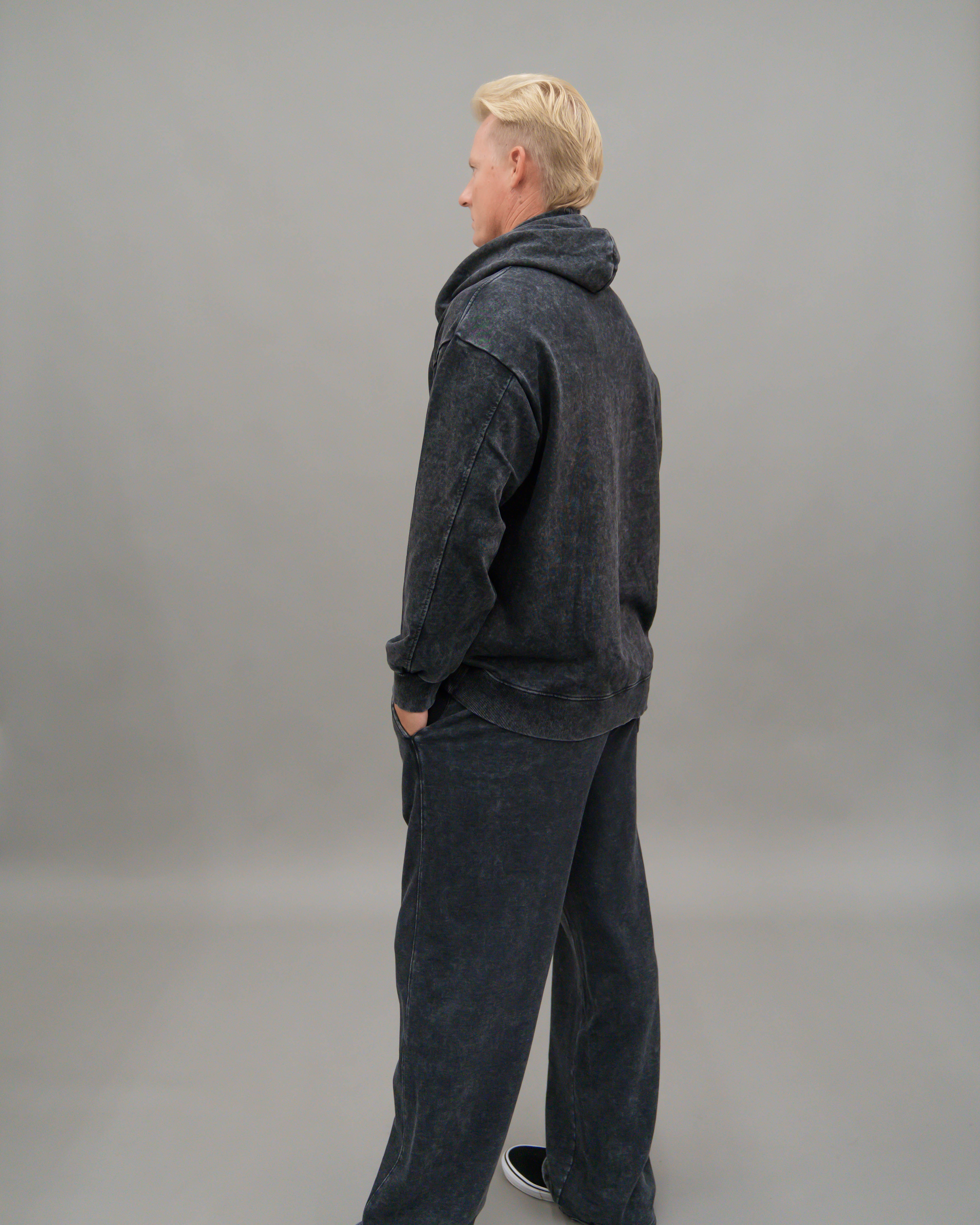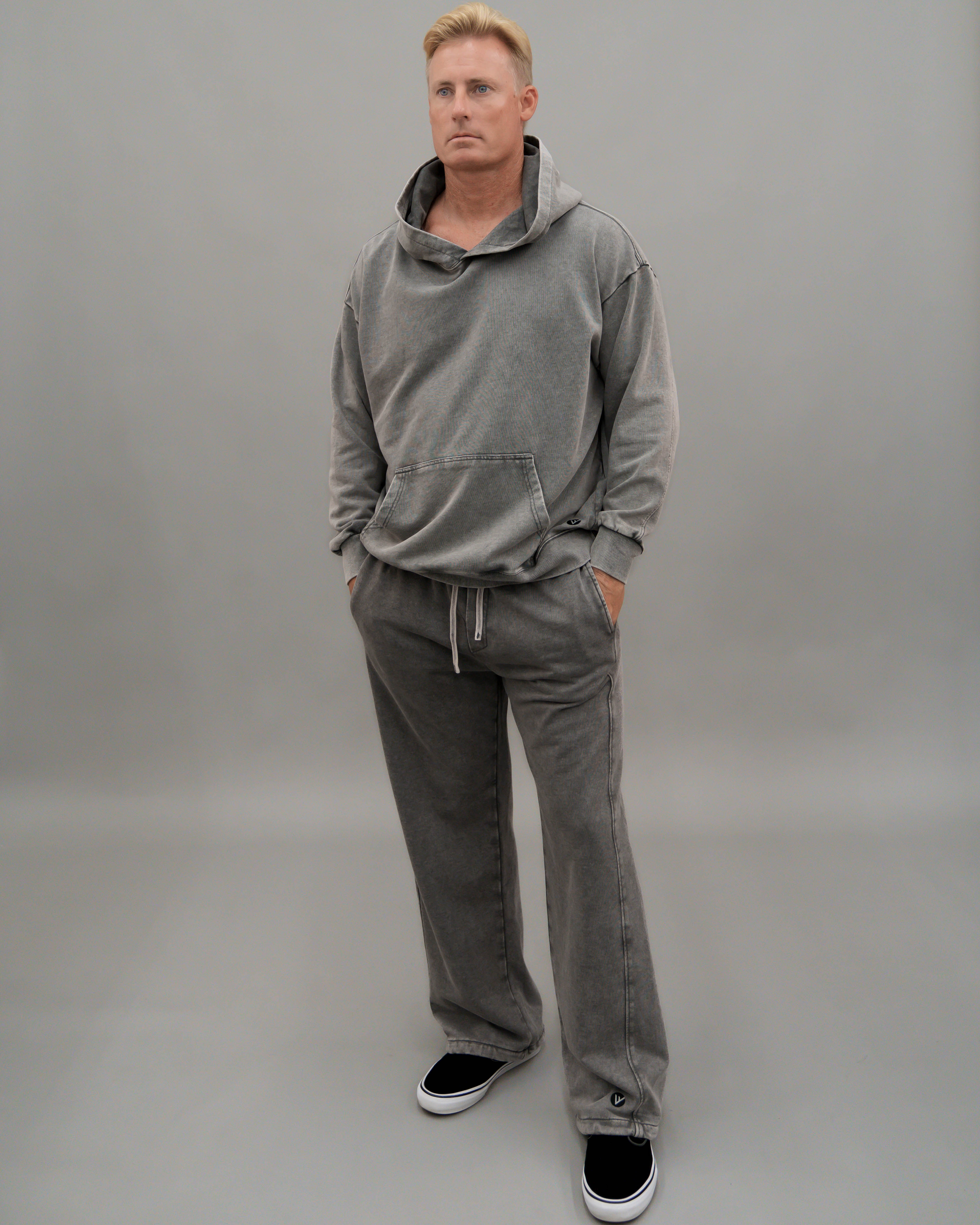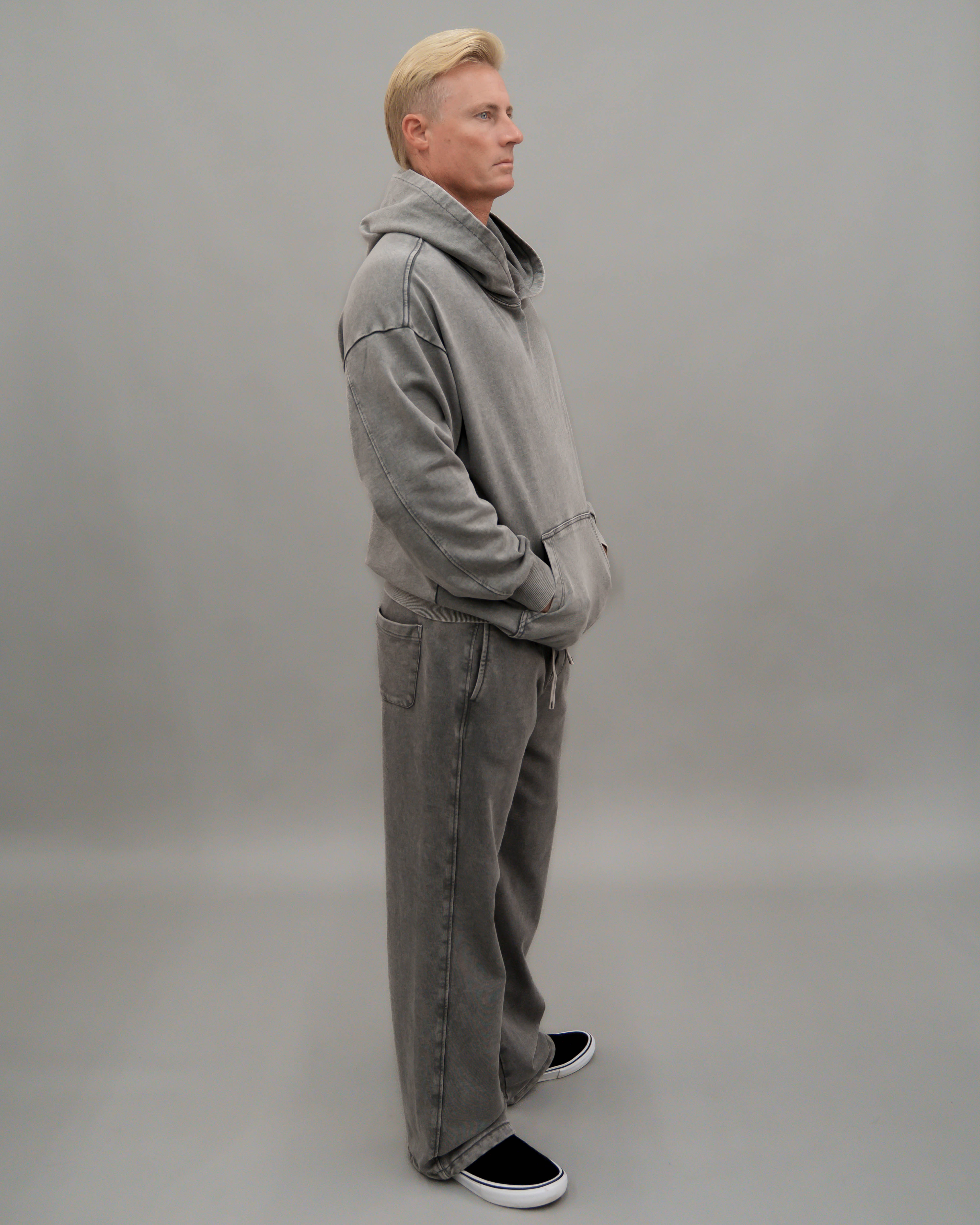 - Roomie legs and knee to added volume and a bungee cord at hems with cord stopper to keep leg warm at winter time. Available in matching set, these pants are made from heavy weight 360 GSM French terry is a blend of vintage edge, comfort, and monochrome sophistication.