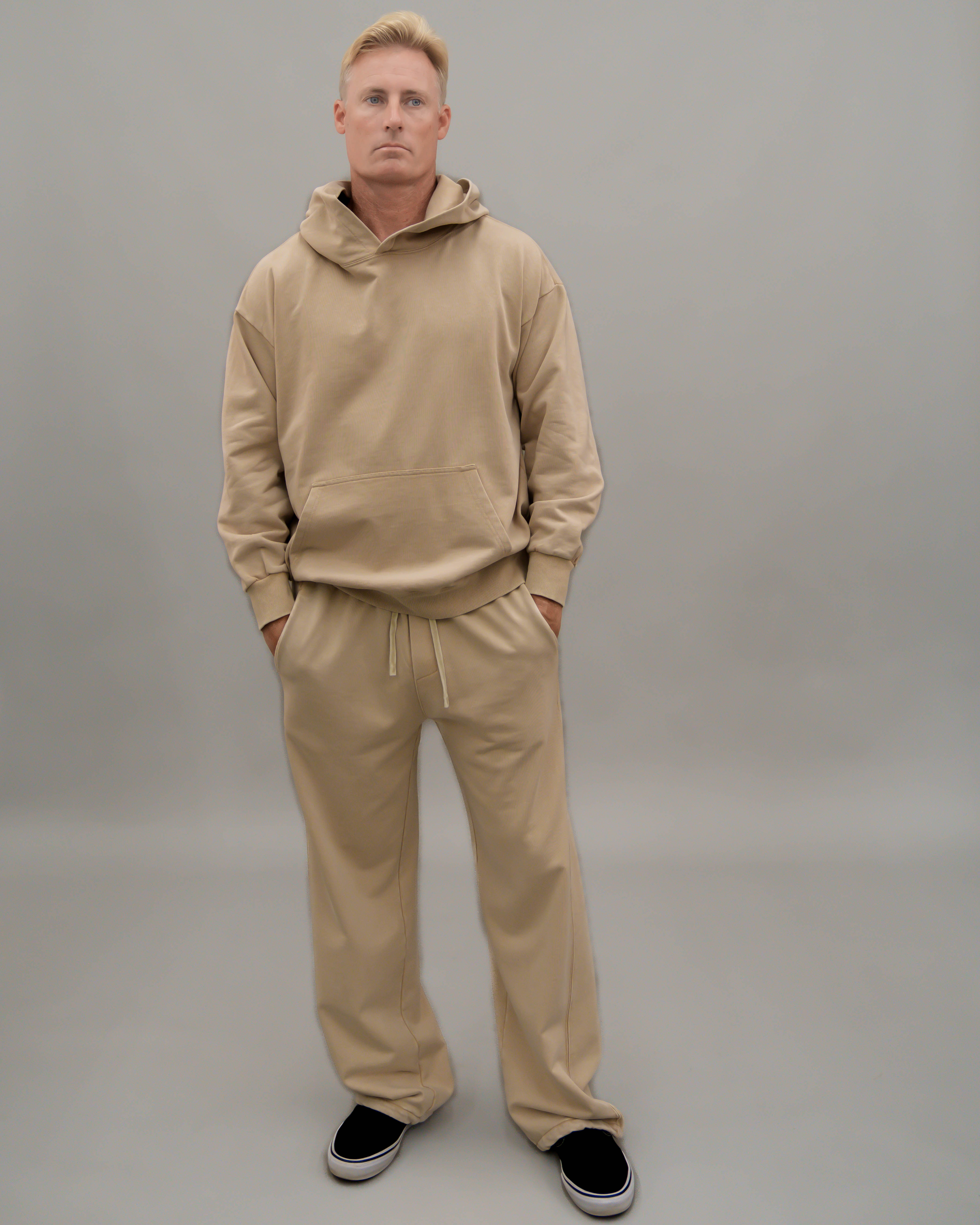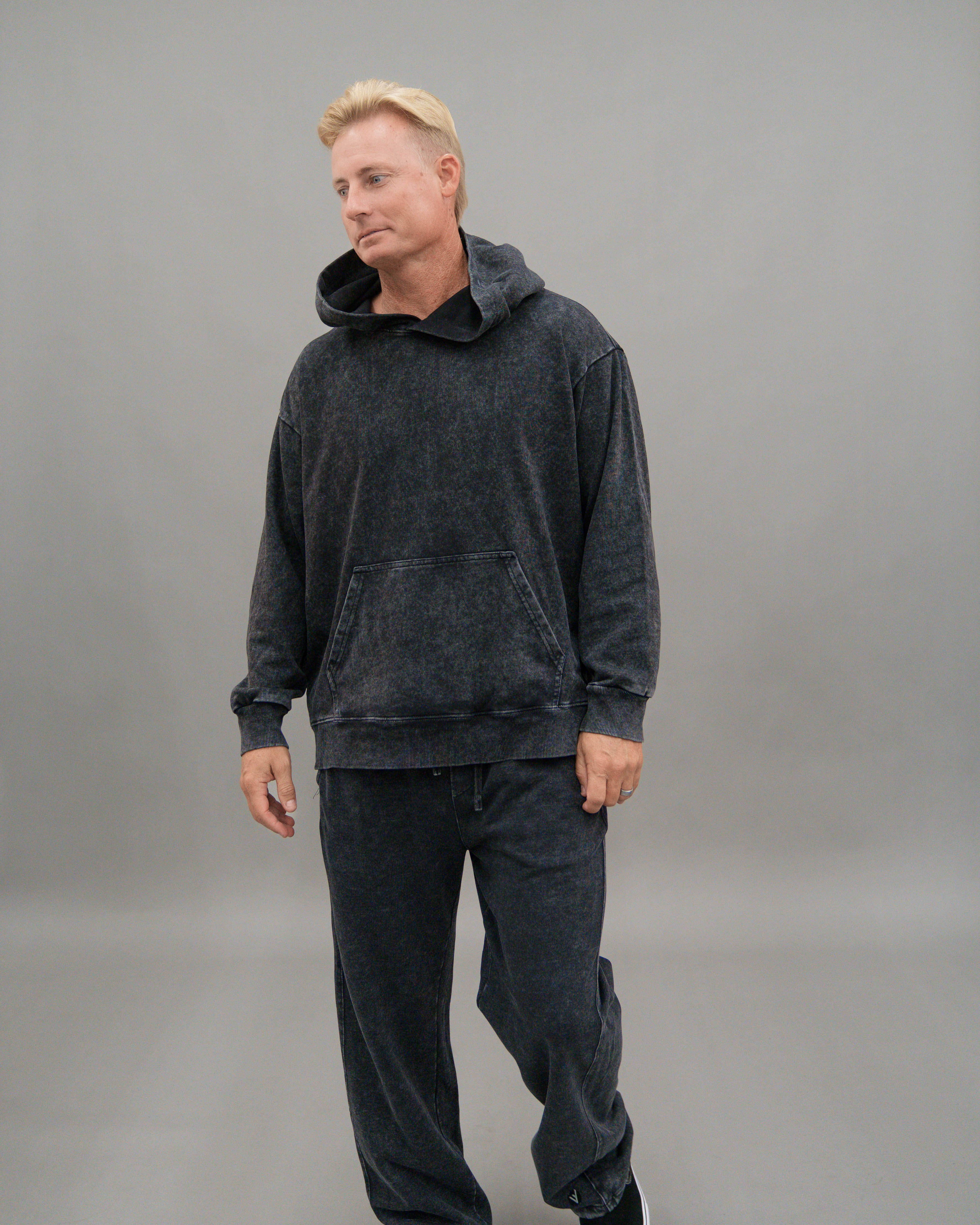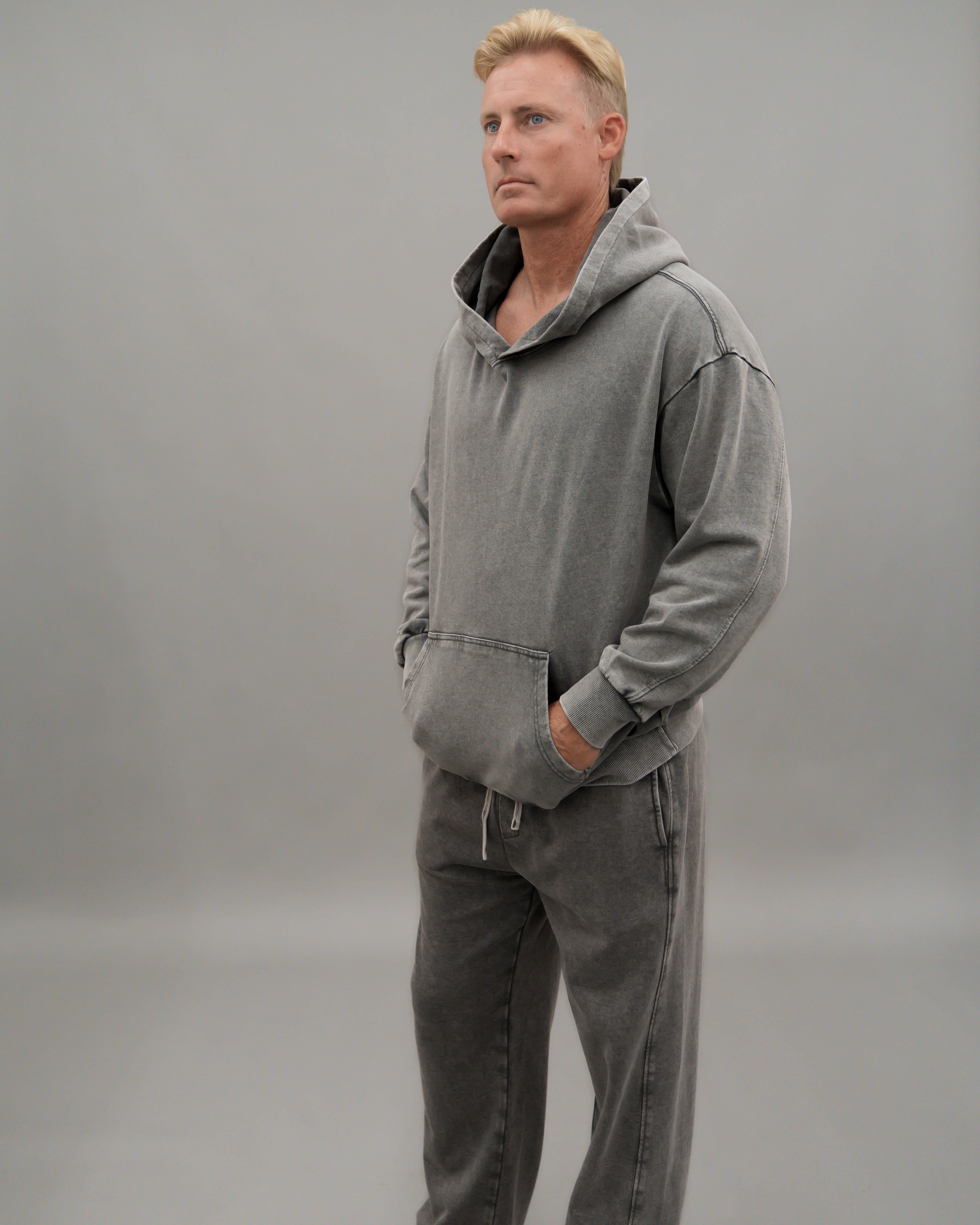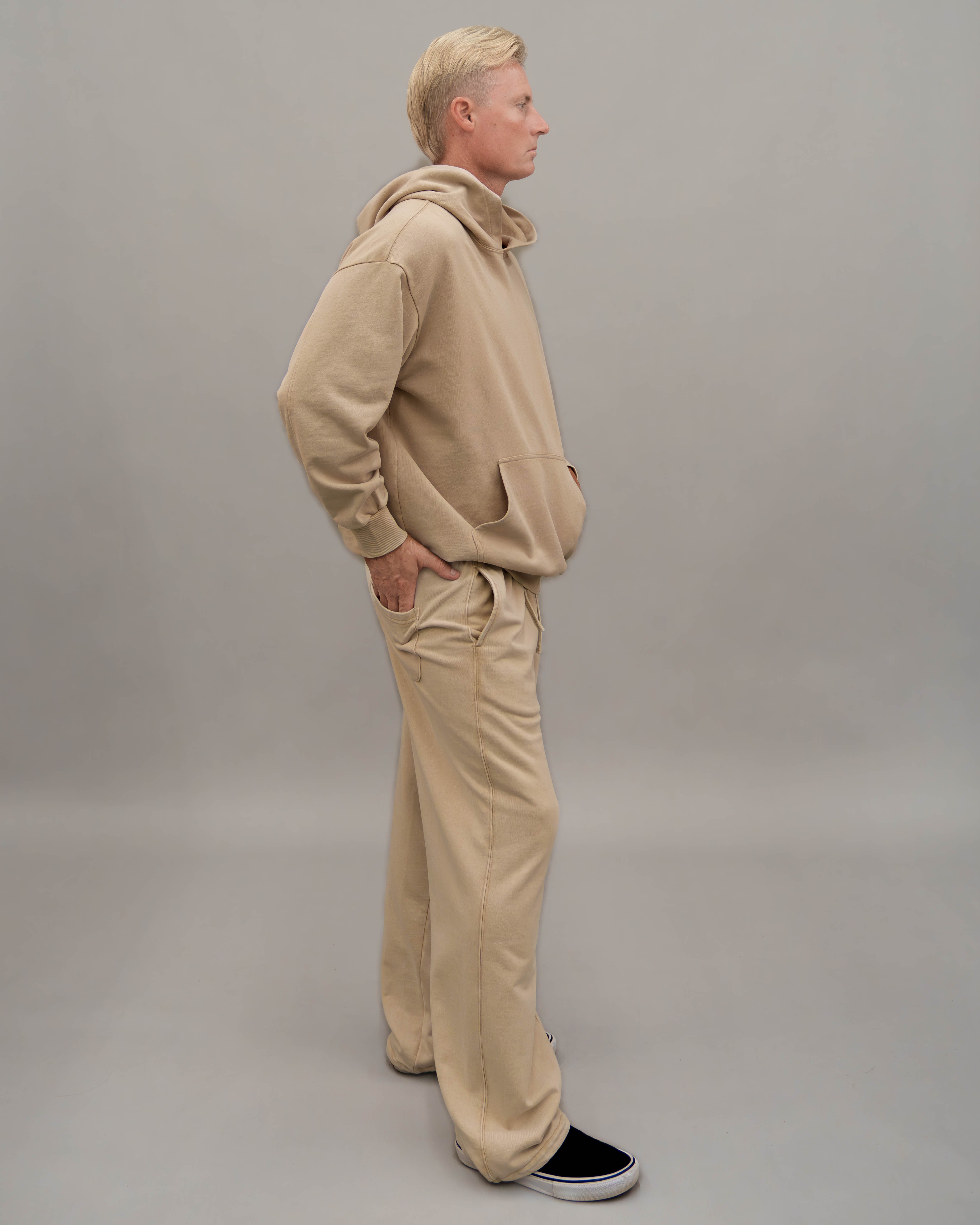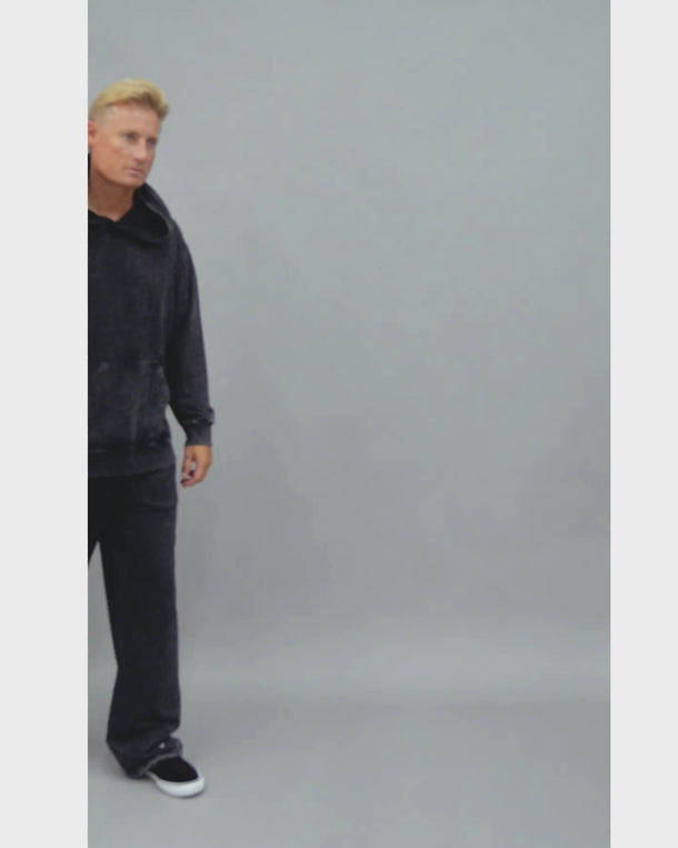 - Roomie legs and knee to added volume and a bungee cord at hems with cord stopper to keep leg warm at winter time. Available in matching set, these pants are made from heavy weight 360 GSM French terry is a blend of vintage edge, comfort, and monochrome sophistication.