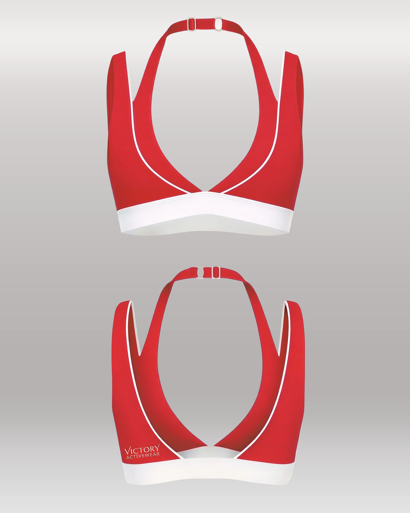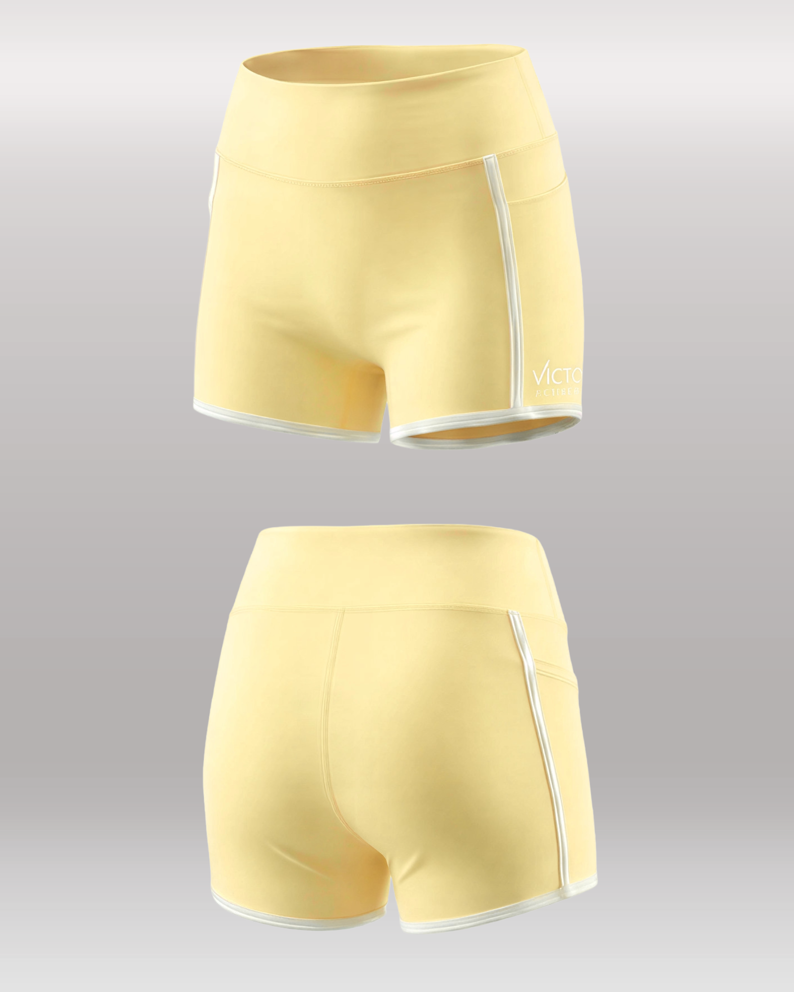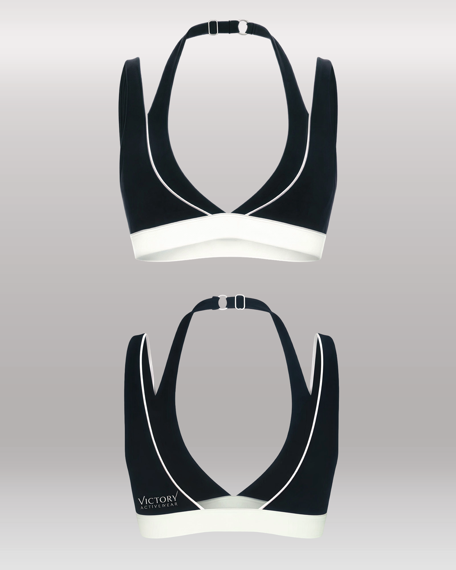 - Super stylish pop of color, the Crouching Tiger is the combination set of a deep V-shape neckline with gorgeous halter adjustable straps for the perfect femme finish and a super formfitting short with contrast piping and two side well pockets.