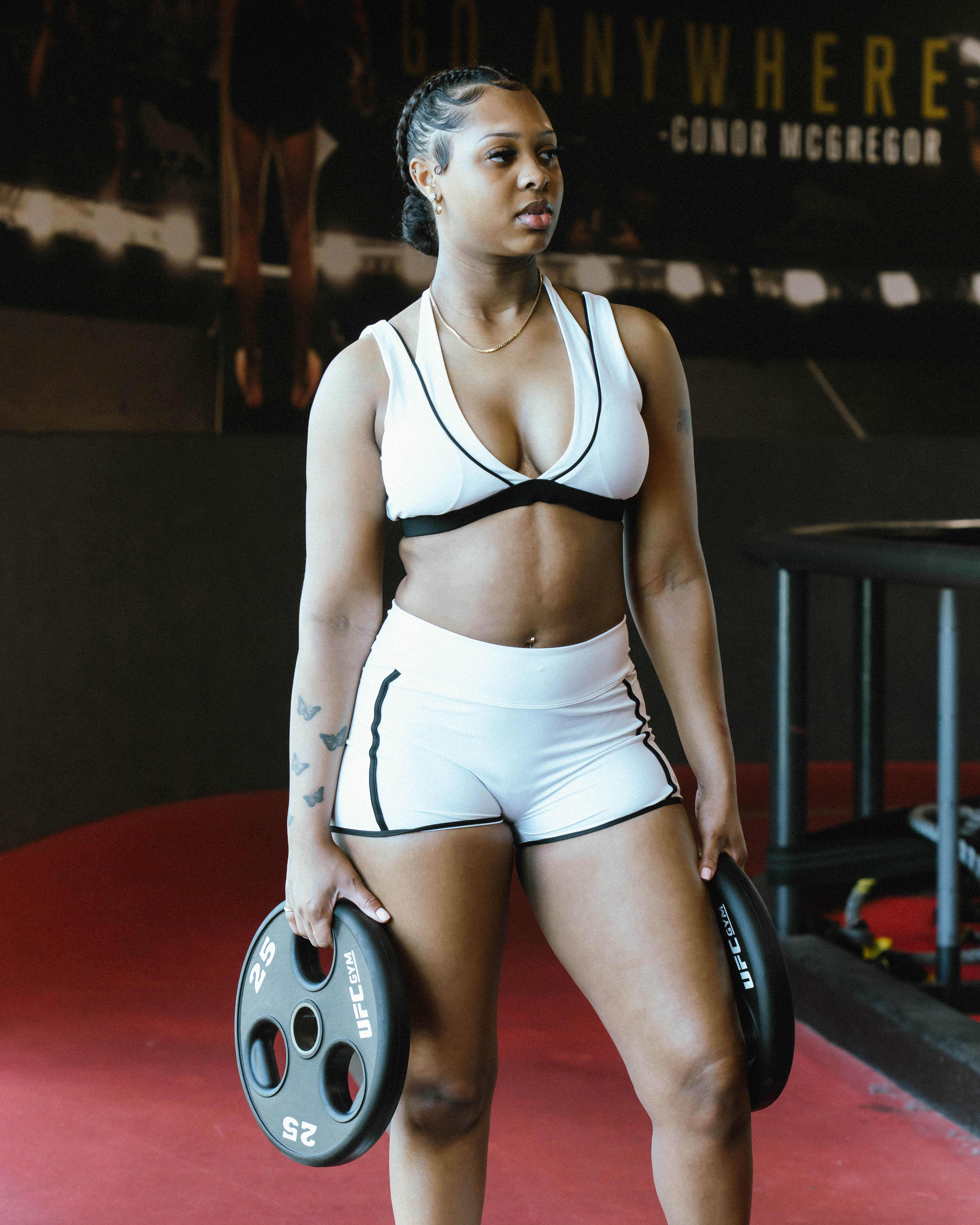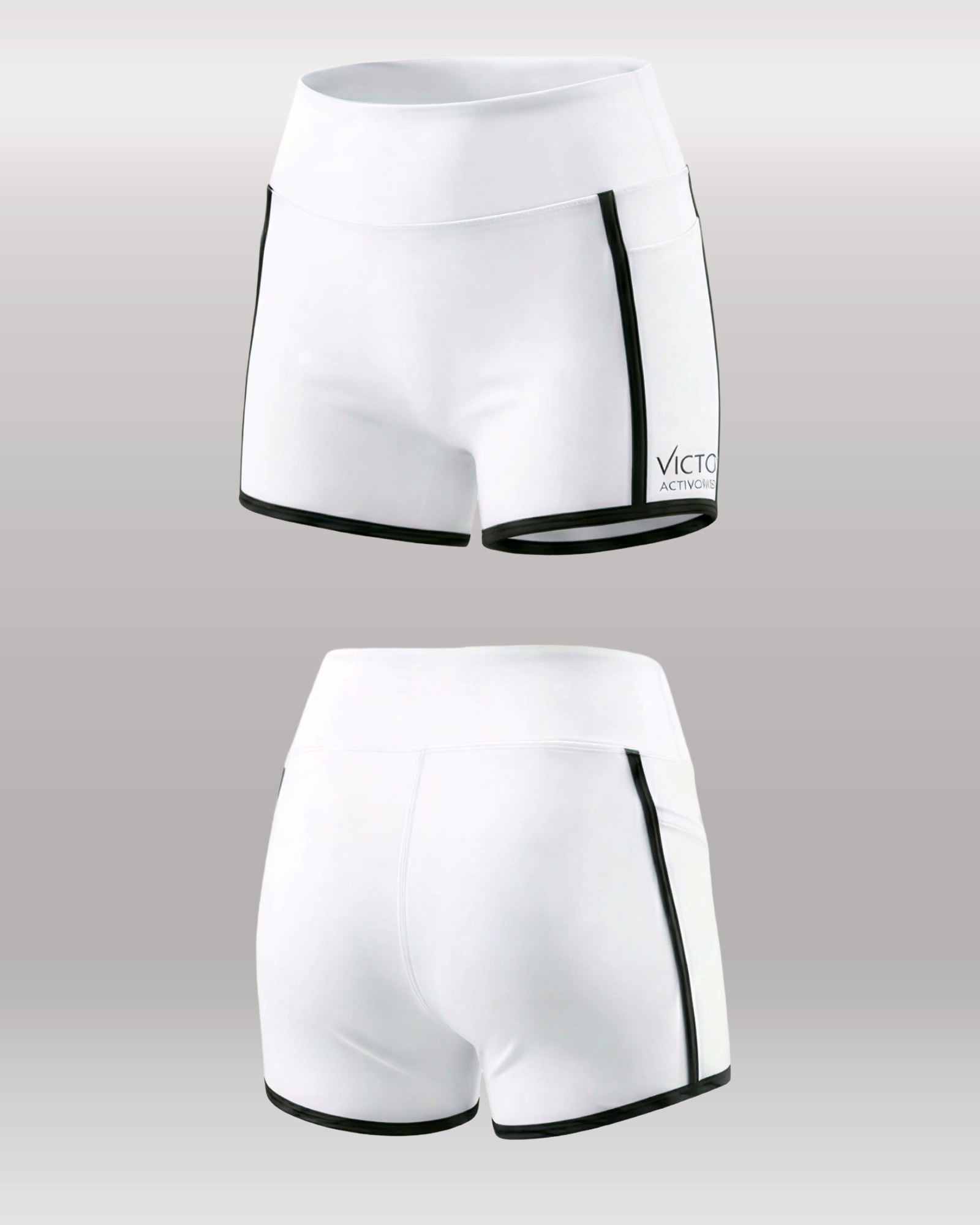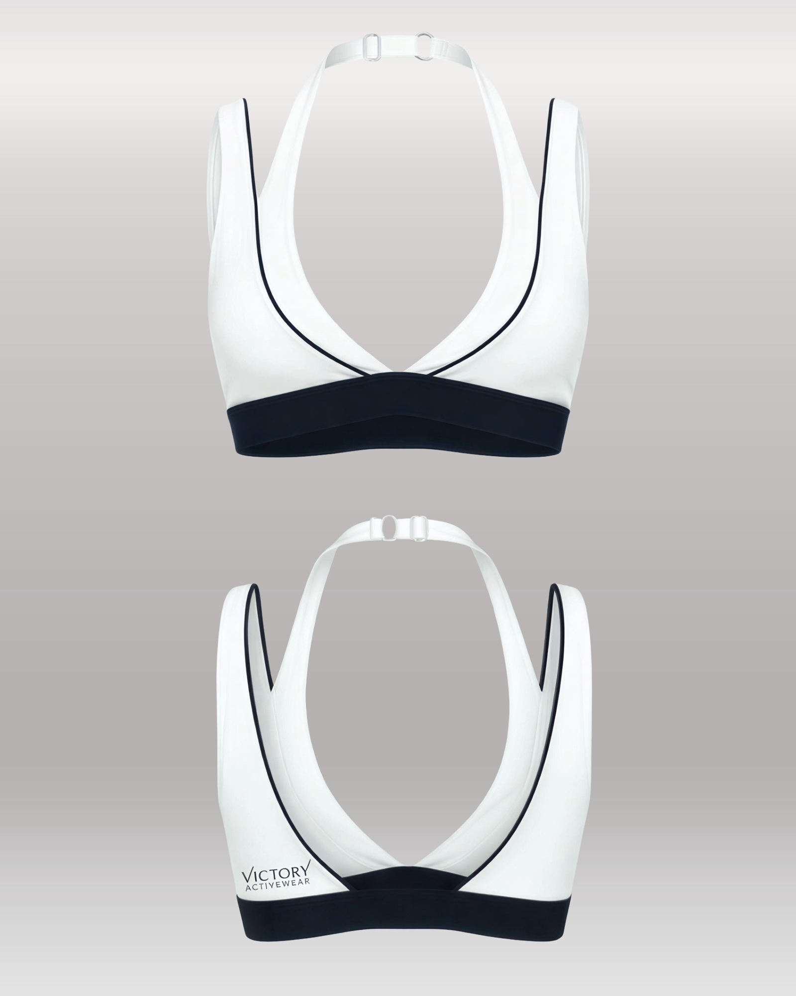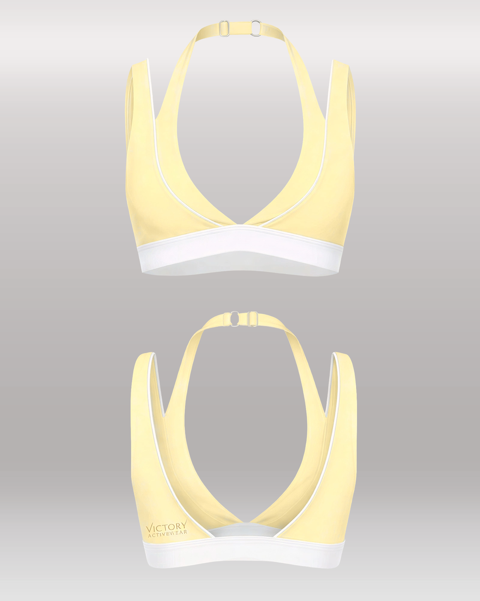 - Super stylish pop of color, the Crouching Tiger is the combination set of a deep V-shape neckline with gorgeous halter adjustable straps for the perfect femme finish and a super formfitting short with contrast piping and two side well pockets.